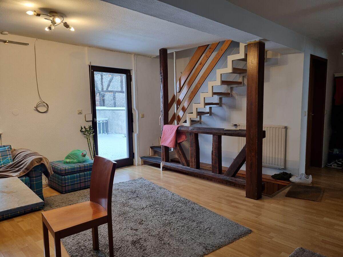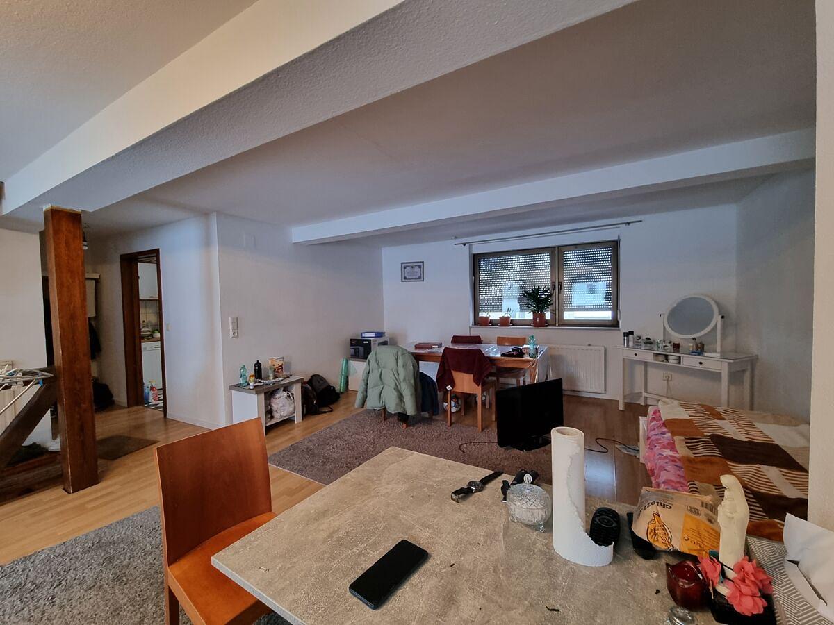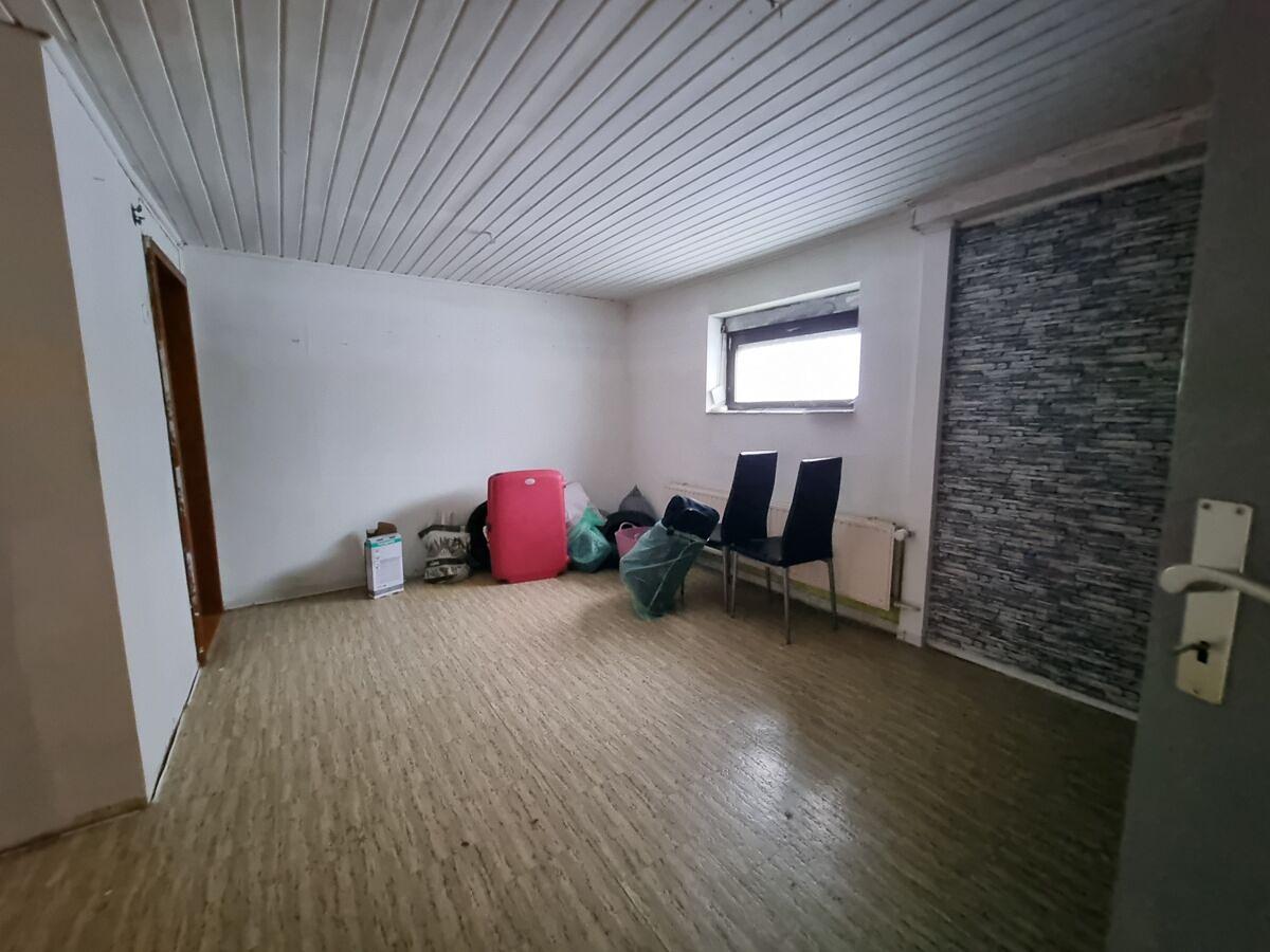 Im Erdgeschoss befindet sich eine großzügig geschnittene Wohneinheit mit einem weitläufigen Wohn- und Schlafbereich, der sich über die gesamte Hauslänge erstreckt. Ergänzt wird das Raumangebot durch eine separate Küche sowie ein Duschbad mit Anschlussmöglichkeiten für Waschmaschine und Trockner. Ein eigener Kellerraum bietet zusätzliche Abstellfläche.