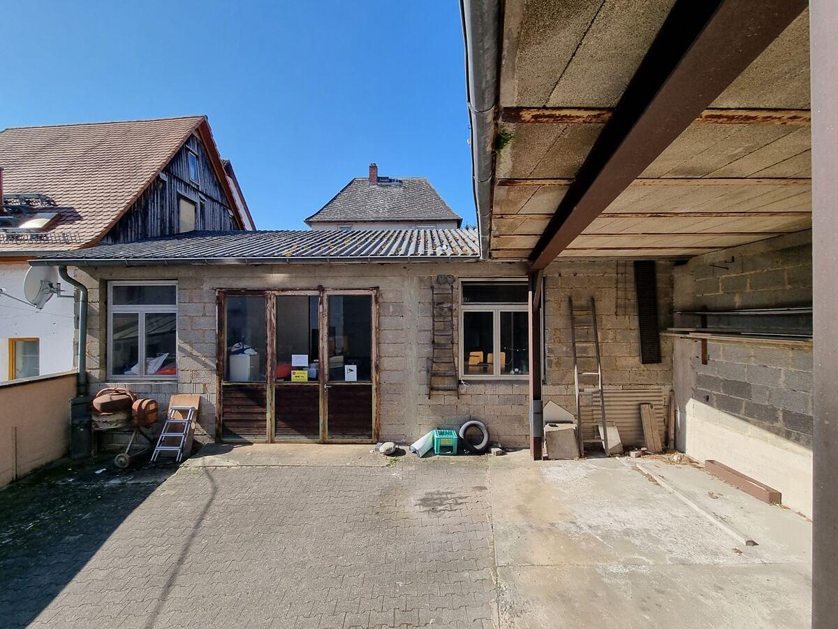 Der Innenhof bietet Platz für drei bis vier Pkw-Stellplätze. Zusätzlich befindet sich auf dem Grundstück ein Nebengebäude, das sich hervorragend als Lagerfläche oder kleine Werkstatt nutzen lässt.