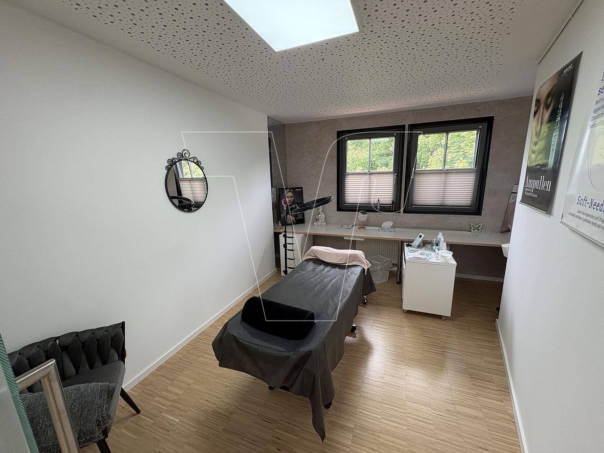 Willkommen im charmanten Hofgut Hagenbach in Backnang – Ihrem neuen Ort für produktives Arbeiten in ruhiger und entspannter Atmosphäre. Diese vielseitig nutzbare Mietfläche im ersten Obergeschoss bietet Ihnen den idealen Raum zur Verwirklichung Ihrer beruflichen Träume, sei es als Freiberufler, Architekt, Versicherungsmakler, oder in der Physiotherapie. Aktuell als Kosmetikstudio betrieben, lockt dieses Objekt mit einem einladenden Eingangsbereich, einem großzügigen Empfangs- und Wartebereich, drei Behandlungszimmern, praktischen Lagerflächen sowie einem kleinen Bereich mit Küchenzeile und modernen Sanitärräumlichkeiten. Der gepflegte Zustand mit einem eleganten Parkettboden rundet das Angebot ab und sorgt für eine angenehme Wohlfühlatmosphäre.