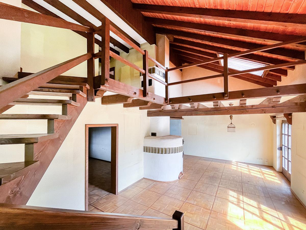 Gemütliches Einfamilienhaus mit viel Holzoptik, offener Galerie und zentralem Kachelofen.