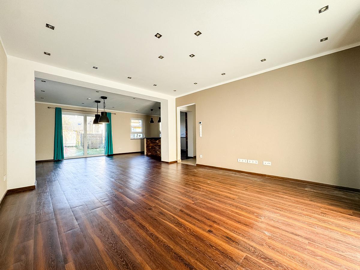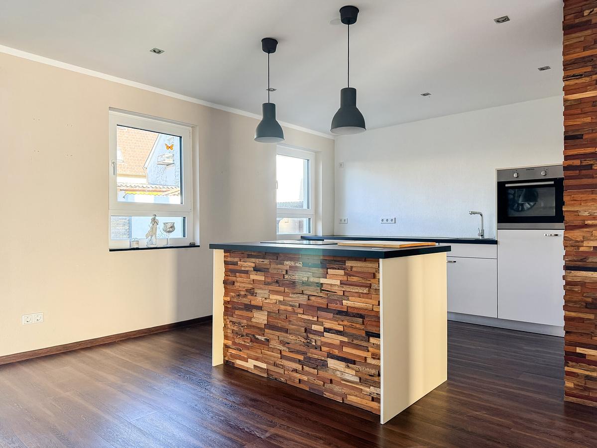 Herzstück des Hauses ist der offene Wohn-, Ess- und Kochbereich mit moderner Kochinsel. Große Fensterflächen sorgen für viel Tageslicht und schaffen eine helle, freundliche Atmosphäre. Von hier aus gelangen Sie direkt in den Garten – ideal für entspannte Stunden im Freien oder gemeinsame Zeit mit Familie und Freunden.