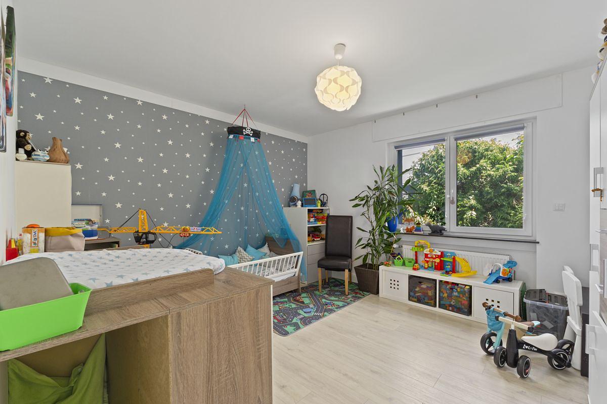Über den Flur gelangen Sie in die Kinderzimmer, das Schlafzimmer sowie in zwei moderne Duschbäder. Das Schlafzimmer ist durchdacht unterteilt und verfügt über einen separaten, abgetrennten Ankleidebereich – ein echter Pluspunkt im Alltag.