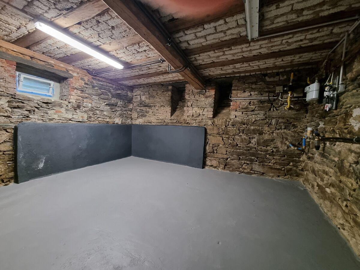 Der Keller verfügt über einen geräumigen Abstellraum mit Hausanschlüssen sowie einen separaten Heizungsraum mit zusätzlicher Stellfläche. Von hier aus haben Sie direkten Zugang zum Innenhof und zum großzügigen Nebengebäude, das vielfältige Nutzungsmöglichkeiten bietet (z. B. Werkstatt, Hobbyraum oder Lager).