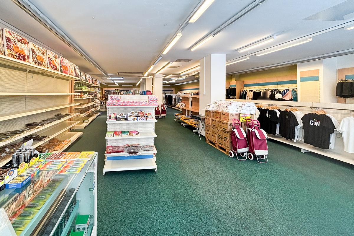 Die Gewerbefläche bietet ideale Bedingungen für Einzelhandel oder Dienstleistungsgewerbe: Eine breite Schaufensterfront sowie eine automatische Schiebetür schaffen ein helles, einladendes Ambiente mit direktem Zugang zum Lagerbereich im Untergeschoss.