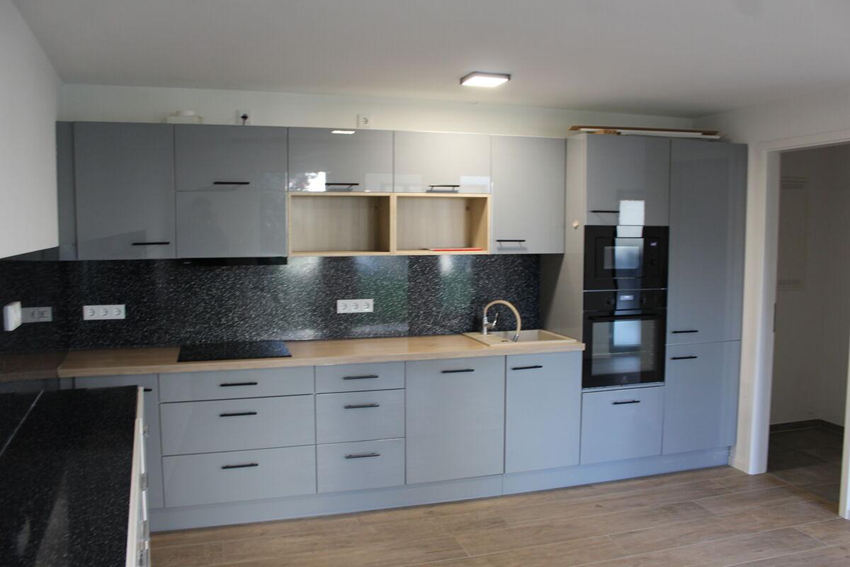 Im Erdgeschoss befindet sich eine großzügige Küche mit hochwertigen Einbauten und einem Essbereich. Weiter bietet das Erdgeschoss einen Wohnbereich, eine Diele, ein WC mit Dusche und Tageslicht sowie einen Abstellraum.