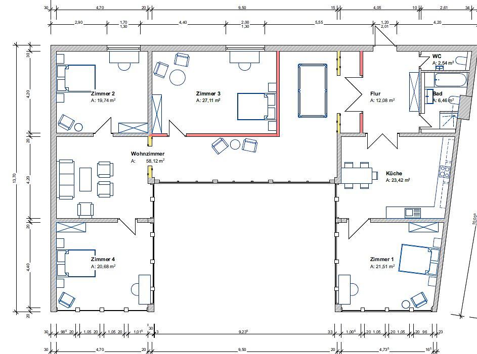 5 Zimmer, davon 4 separat begehbare Räume