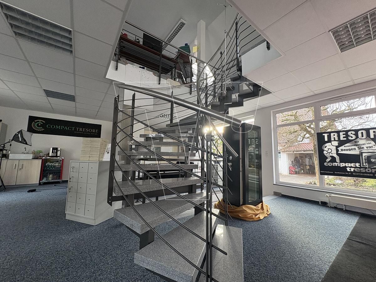 Das Erdgeschoss wird derzeit als Ausstellungsfläche genutzt, mit reichlich Platz für kreative und funktionale Gestaltungen. Im Obergeschoss erwarten Sie Büroflächen, die ein ideales Arbeitsumfeld schaffen. Das Untergeschoss beherbergt Sanitärräumlichkeiten und zusätzliche Lagerflächen, mit einem großen Rolltor für die bequeme Anlieferung von Waren. Bei Bedarf können Sie auch weitere Lagerflächen im gegenüberliegenden Gebäude dazu mieten.