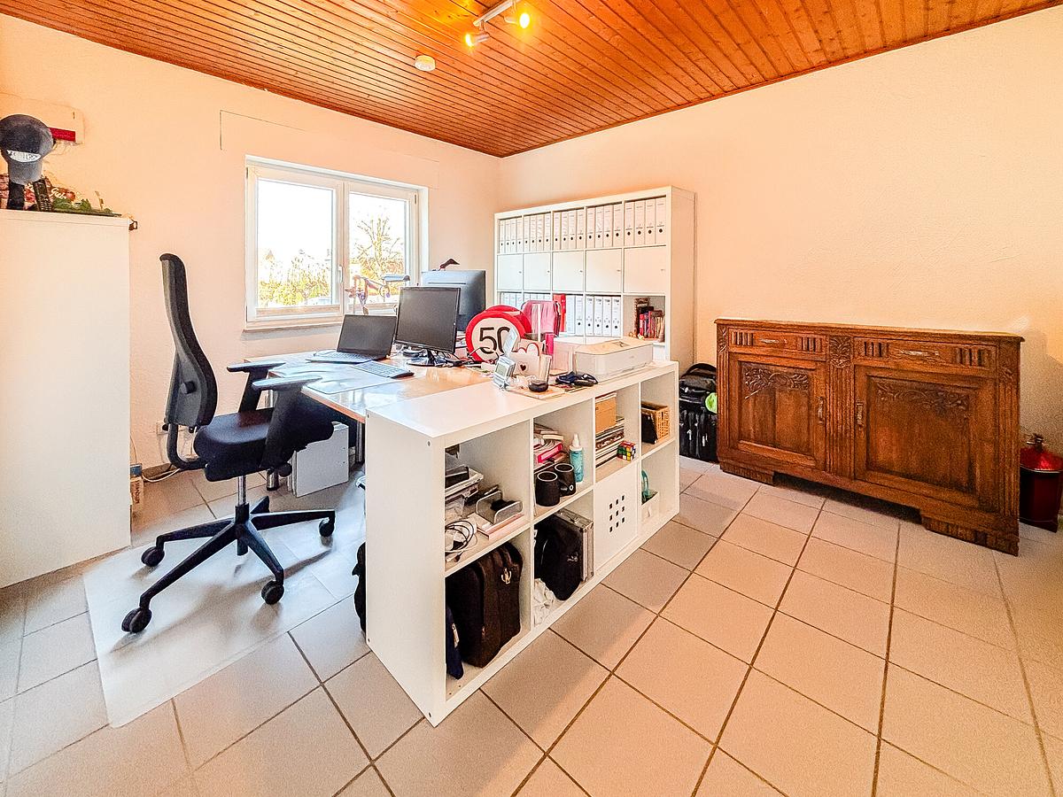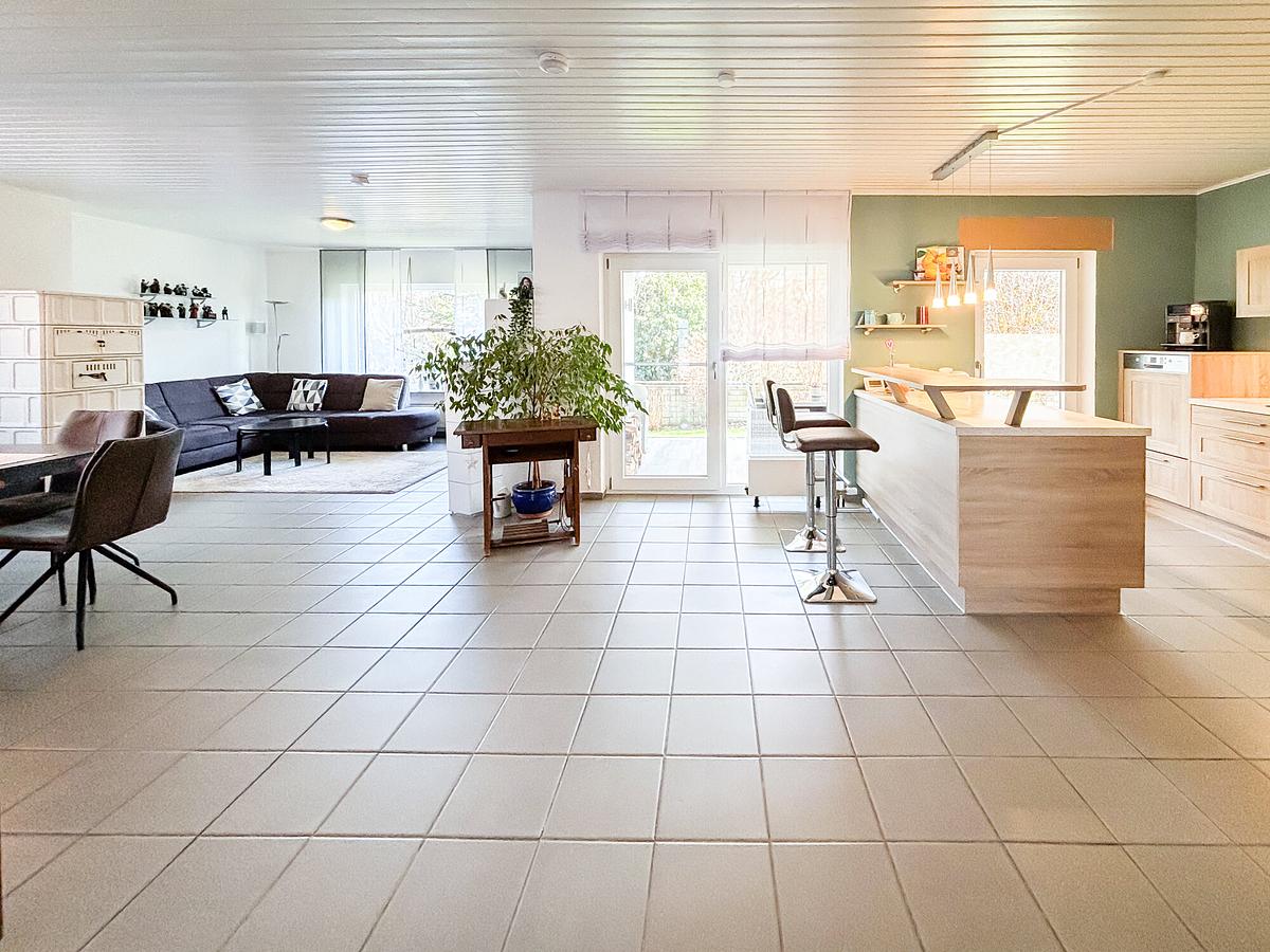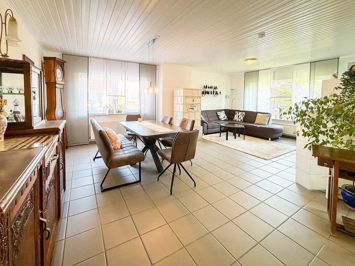 Das lichtdurchflutete Einfamilienhaus wurde 1979 in massiver Bauweise errichtet und bietet ca. 121 m² Wohnfläche auf einer Ebene. Herzstück ist das großzügige Wohn- und Esszimmer mit Kachelofen und direktem Zugang zur Terrasse. Ergänzt wird das Raumangebot durch Schlafzimmer, Kinderzimmer, offene Küche, Gästezimmer, Bad und Gäste-WC. Das ausgebaute Dachgeschoss bietet zusätzliche Nutzungsmöglichkeiten. Garten, Doppelgarage und zahlreiche Modernisierungen runden das Angebot ab.