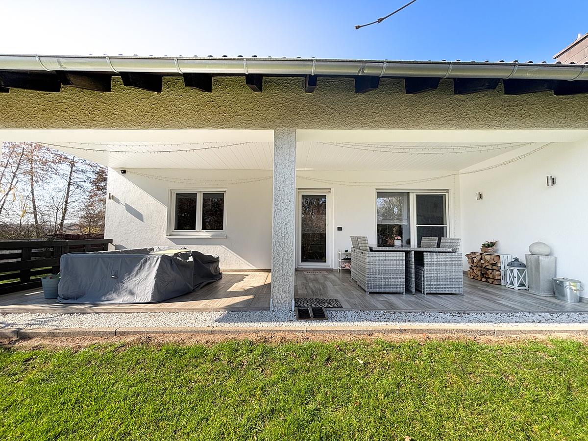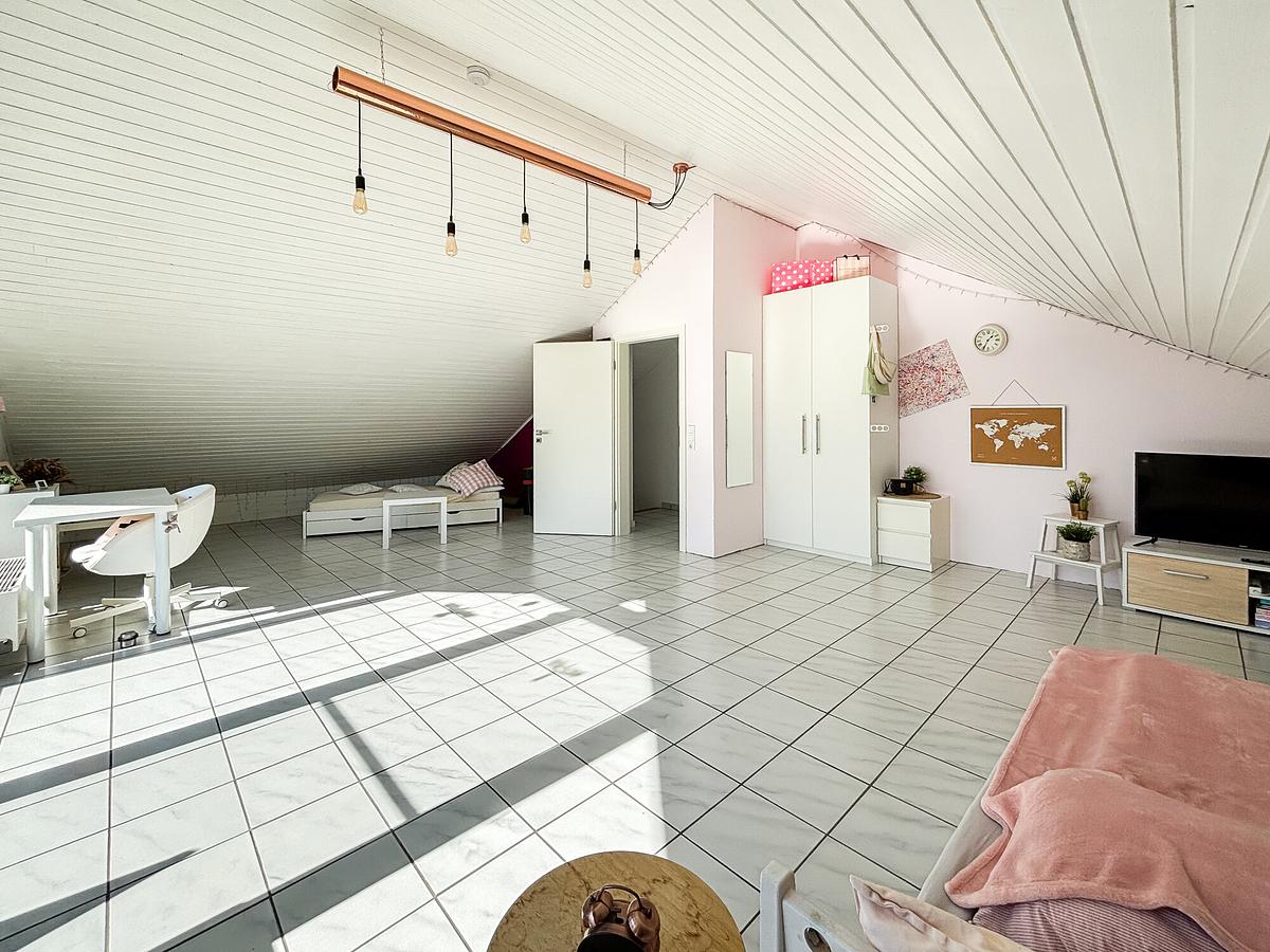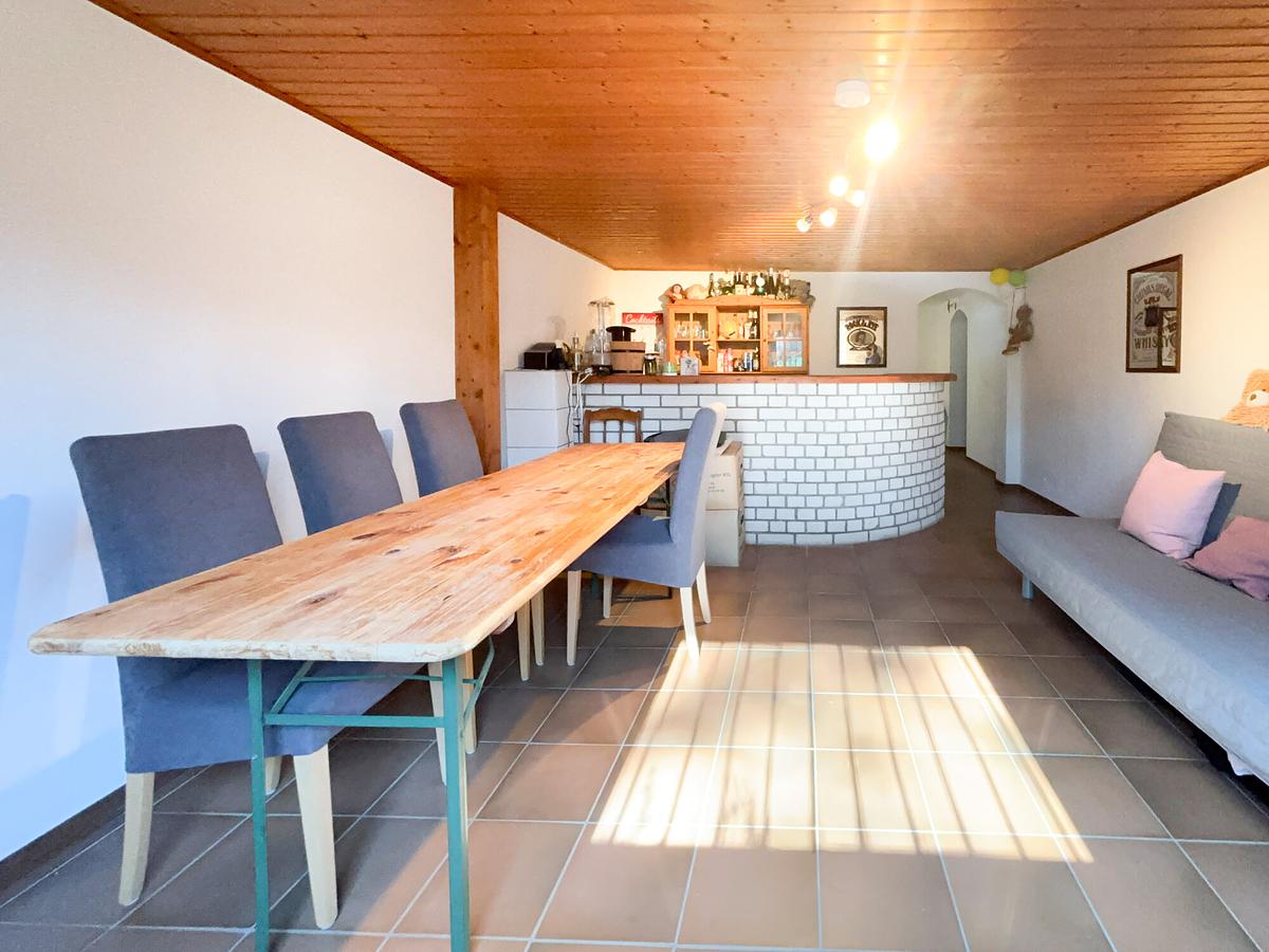 Das lichtdurchflutete Einfamilienhaus wurde 1979 in massiver Bauweise errichtet und bietet ca. 121 m² Wohnfläche auf einer Ebene. Herzstück ist das großzügige Wohn- und Esszimmer mit Kachelofen und direktem Zugang zur Terrasse. Ergänzt wird das Raumangebot durch Schlafzimmer, Kinderzimmer, offene Küche, Gästezimmer, Bad und Gäste-WC. Das ausgebaute Dachgeschoss bietet zusätzliche Nutzungsmöglichkeiten. Garten, Doppelgarage und zahlreiche Modernisierungen runden das Angebot ab.