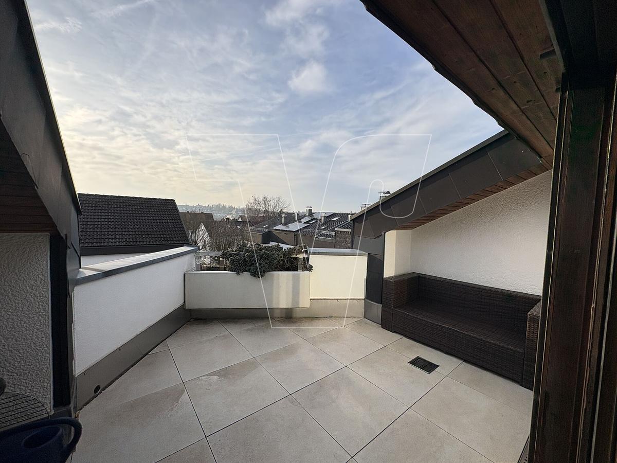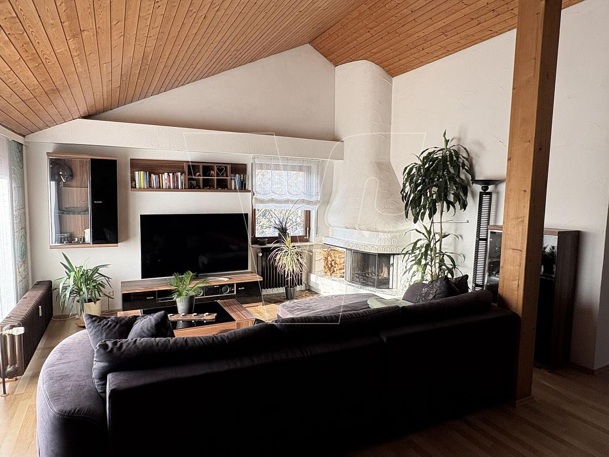 Der lichtdurchflutete Wohn- und Essbereich bietet mit einem stilvollen Kamin ein wirkliches Highlight, das für gemütliche Abende sorgt. Von hier aus gelangen Sie direkt auf die angrenzende Loggia, die mit einem herrlichen Ausblick und viel Sonnenschein zum Entspannen einlädt.