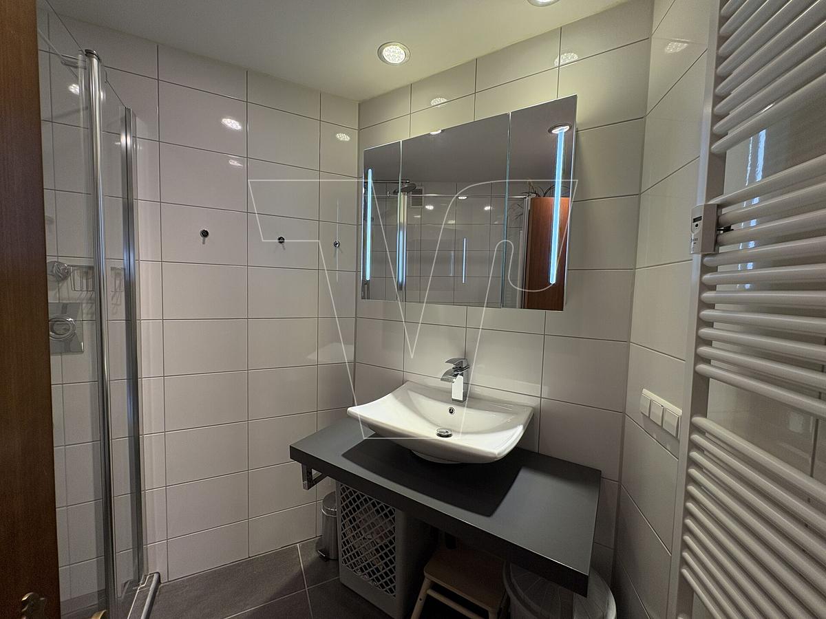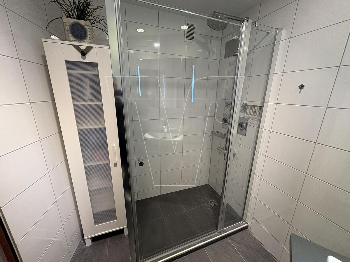 Ein großzügiges Schlafzimmer bietet ausreichend Platz zur persönlichen Entfaltung, während ein praktischer Abstellraum zusätzlichen Stauraum gewährleistet. Das innenliegende Badezimmer wurde 2016 modernisiert, ebenso das separate WC, und überzeugt durch zeitgemäßes Design und Funktionalität. Die vollausgestattete Küche punktet mit hoher Qualität und lässt keine Wünsche offen.