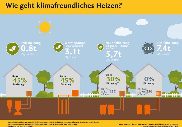 „Die Heizung ist der größte CO2-Verursacher im Haushalt“, sagt Architekt Sven Haustein von der Bausparkasse Schwäbisch Hall. „Hier liegt der entscheidende Hebel für klimafreundliches Wohnen.“ Laut Umweltbundesamt kann ein durchschnittlicher Vier-Personen-Haushalt durch Austausch der alten Ölheizung seinen CO2-Ausstoß um rund zehn Tonnen pro Jahr senken. Noch heizen rund 80 Prozent der Deutschen mit fossilen Brennstoffen, wie die aktuelle Heizungsmarkt-Studie des Bundesverbands der Energie- und Wasserwirtschaft (BDEW) zeigt. Dabei ist die Hälfte der Ölheizungen älter als 20 Jahre, rund 15 Prozent sogar älter als 30 Jahre. Ist die Entscheidung für den Austausch der Heizung gefallen, stellt sich Hausbesitzern die Frage: Welche Alternative eignet sich für unser Haus?